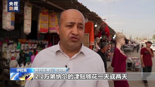 伊拉克有超过25万登记在册的叙利亚难民,其中60%的难民生活在库尔德省9个不同的难民营。一些难民营的难民,每人每月可获得2.2万伊拉克第纳尔的食物津贴,约合人民币100元。叙利亚难民哈利勒说,津贴只够一两天的花销。