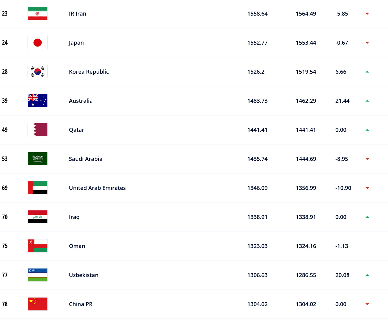 本期世界排名前三名的球队分别是巴西、比利时、阿根廷。位列亚洲区前十的球队依次是:伊朗、日本、韩国、澳大利亚、卡塔尔、沙特、阿联酋、伊拉克、阿曼和乌兹别克斯坦。