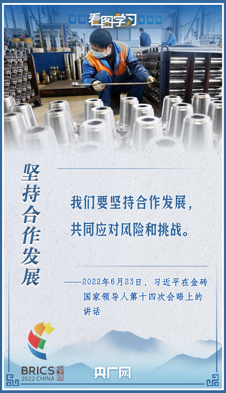 2022年6月23日,习近平主席在北京以视频方式主持金砖国家领导人第十四次会晤并发表题为《构建高质量伙伴关系 开启金砖合作新征程》的重要讲话。新形势下,习近平强调,“金砖国家更要敞开大门谋发展、张开怀抱促合作”。一起来学习!