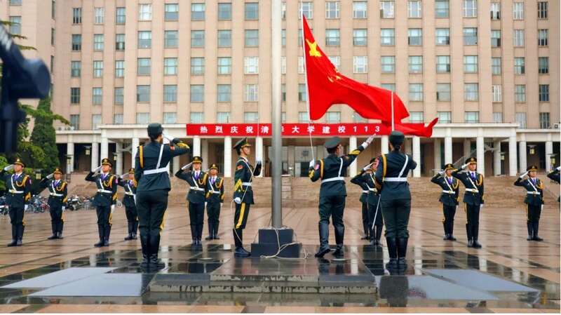 校庆日升旗仪式现场。图片来源于“清华大学学生记者团”微信公众号