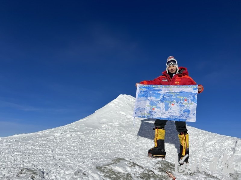 图为陈旻登上南极洲最高峰文森峰。