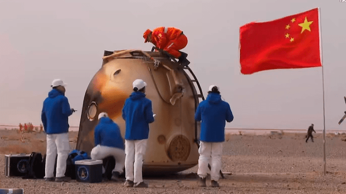 4月16日9时56分,神舟十三号载人飞船返回舱在东风着陆场成功着陆,执行飞行任务的航天员翟志刚、王亚平、叶光富安全顺利出舱,身体状态良好,神舟十三号载人飞行任务取得圆满成功。