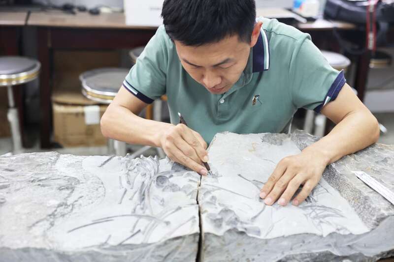2017年,贵州省地质调查院在广西隆林野外区域调查中发现了疑似脊椎动物的椎体和肋骨,中国地质大学(武汉)地球科学学院地球生物学系江海水教授、韩凤禄副教授、陈龑老师受邀前往进行了考察发掘。研究团队将含有化石的围岩一并取回,历时3个月进行修复。