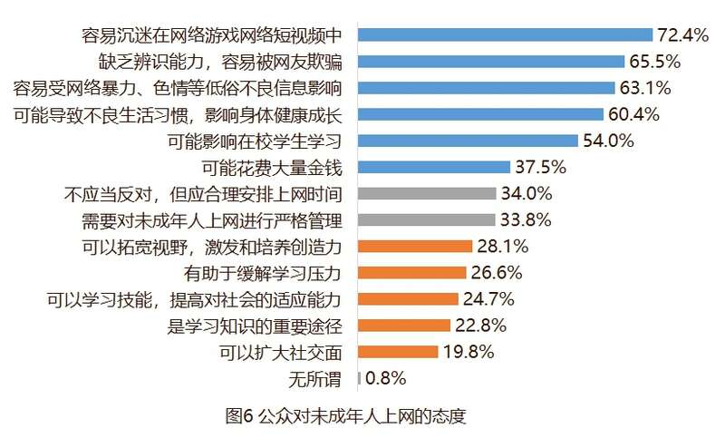 报告同时指出,尽管未成年人技术性保护手段被普遍认可,但仍有待进一步宣传普及。目前,对未成年人上网的限制多于引导,期待网络素养教育课程应予以加强。