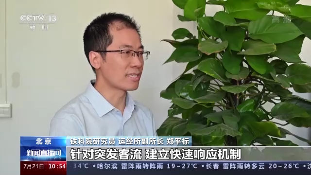 铁科院研究员 运经所副所长 郑平标:针对突发客流,建立快速响应机制,提前储备一定数量的热备车底和乘务人员,通过动车组列车重联运行、普速旅客列车加挂车辆等方式,增加运力投放。