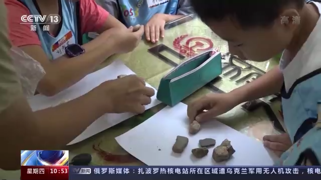 孩子们一边听故事、观赏美景,一边观察着沿途主要矿产矿石标本,记录着自己的行程。