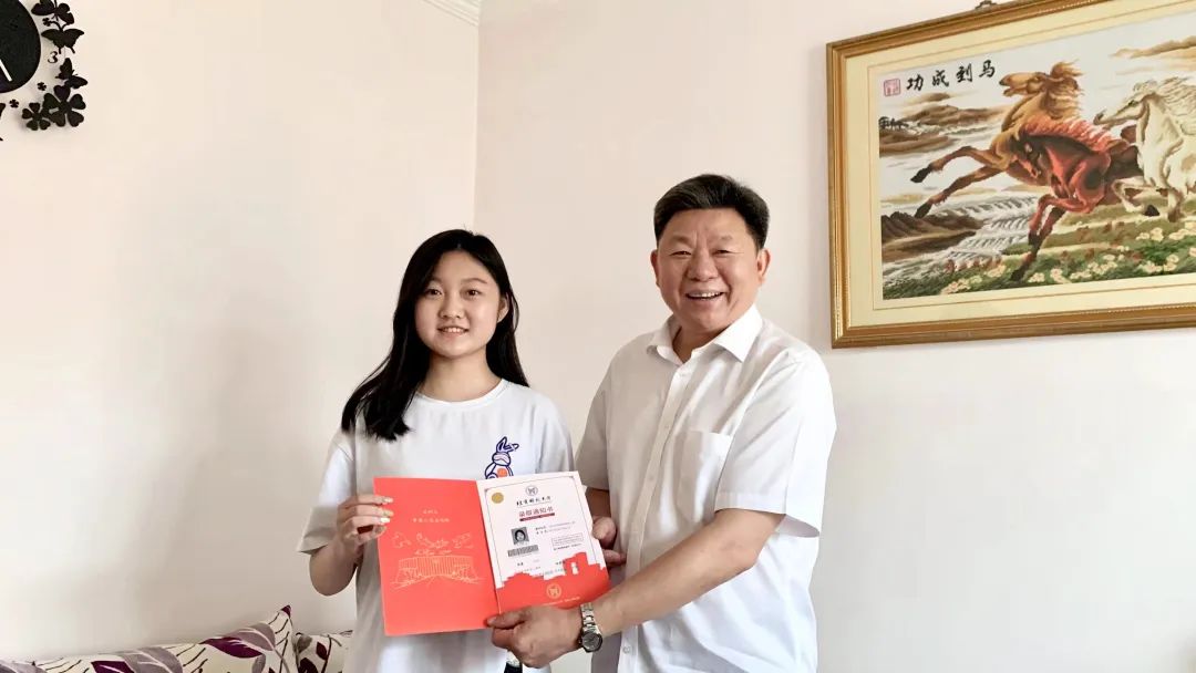 2022年7月13日,学校送出了2022年首封本科生录取通知书,这封通知书通过特殊的“邮差”送达新生手中,两位“邮差”就是杨仁树校长和学生的本科生全程导师、工业设计系主任覃京燕教授。