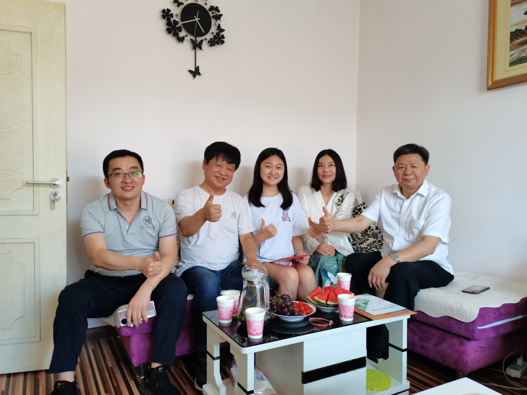 陈晨同学的本科生全程导师覃京燕教授一同来到了新生家中。覃教授向陈晨介绍了视觉传达设计的培养方案及就业方向,并表示今后无论是学习、生活各个方面,都会像照顾自己的孩子一样给予学生指导关怀。同时覃教授给考生带来了一份七十周年校庆礼包,鼓励学生要不怕困难、勇于挑战,要为学校的建设发展贡献力量。