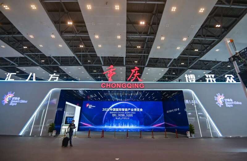 在展馆中央大厅,展示面积达2500平方米的重庆馆非常显眼。馆内60家企业带来超百个智慧应用场景,展示的“黑科技”让人目不暇接。