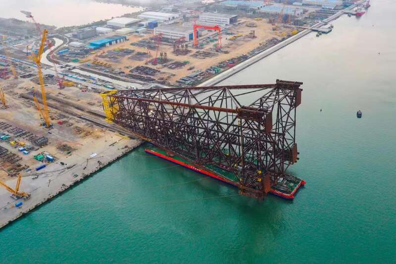 中国青年报客户端北京3月15日电(中青报·中青网记者 韩飏)记者今天从中国海洋石油集团有限公司(以下简称“中国海油”)获悉,经过26个多小时的连续拖拉,“海基一号”导管架顺利登上位于珠海高栏港的运输驳船指定位置,标志着我国自主设计建造的亚洲第一深水导管架陆地建造全部完成。导管架相当于固定式海上油气平台的基座,“海基一号”设计强度可抵御百年一遇的恶劣海况,总高度302米,与埃菲尔铁塔高度接近,重量达3万吨,所用钢材可以制造1艘中型航空母舰,底部长宽各105米,面积相当于26个篮球场。