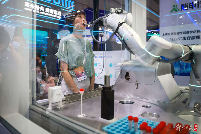 非夕科技核酸采样工作站一次性可以储备240根试管和其他采样配件,每单次采样时间约为28秒。