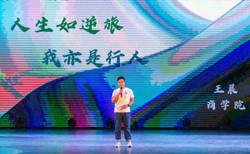 在学校“励志青春”优秀大学生成长故事会上,王晨作《人生如逆旅,我亦是行人》的主题演讲。受访者供图