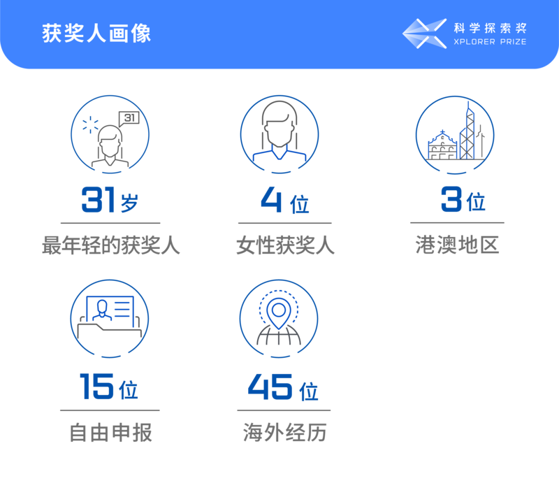 “科学探索奖”于2018年设立,由杨振宁、饶毅、施一公、潘建伟、谢晓亮等14位知名科学家与腾讯基金会发起人马化腾共同发起。奖项覆盖基础科学和前沿技术十个领域,四年来共评选出200位获奖人。作为科学家主导的公益奖项,该奖项鼓励青年科技人才探索科学“无人区”,探索社会支持基础研究人才持续稳定的投入机制。