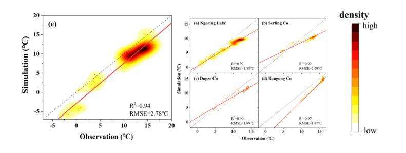 其中,团队重建了广覆盖、长时序的湖面温度数据产品,首次重建了青藏高原160个湖泊的1978—2017年逐日湖面温度数据集。该数据产品覆盖范围广、时间跨度较长、时间分辨率高,可为认识青藏高原湖泊能量平衡对气候变化的响应提供重要的技术和数据支撑。进一步的检验表明,该数据产品与地面实测湖面温度有很好的一致性。