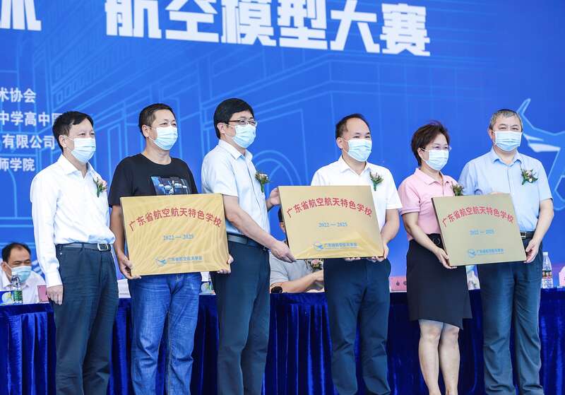 2022年创建和复评的“广东省航空航天特色学校”获颁牌匾。受访者供图