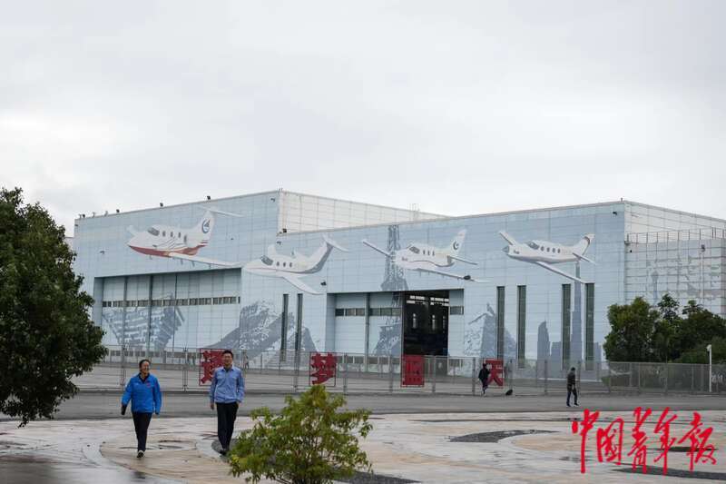 11月7日,广东省珠海市,航空工业通飞珠海基地“鲲龙”AG600总装生产线,工作中的年轻人。当日,这里举行国企开放日活动。