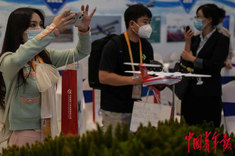 11月7日,广东省珠海市航空工业通飞珠海基地,一名女士在参观。中青报·中青网记者 赵迪/摄