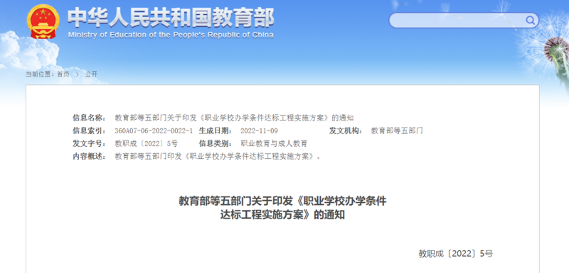 中国青年报客户端讯(中青报·中青网见习记者 杨洁)为进一步优化职业教育布局结构,全面改善职业学校办学条件,提高办学质量、提升办学形象,近日,教育部会同国家发展改革委、财政部、人力资源和社会保障部、住房和城乡建设部,印发《职业学校办学条件达标工程实施方案》(以下简称《实施方案》)。《实施方案》提出,各省、自治区、直辖市和新疆生产建设兵团职业学校办学条件重点监测指标全部达标的学校比例,到2023年底达到80%以上,到2025年底达到90%以上。到2025年底仍不能达标的学校,要采取调减招生计划等措施。