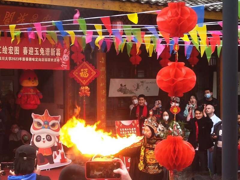 中国青年报客户端讯(卢希芬 夏库拉 肖威搏 中青报·中青网记者 王鑫昕)1月15日,四川大学在望江校区中华文化研究院,面向寒假留校学生举办了主题为“贤聚锦江绘宏图,春迎玉兔谱新篇”的新春趣味定向游园联欢活动。川大留校师生生欢聚一堂,共迎新春。