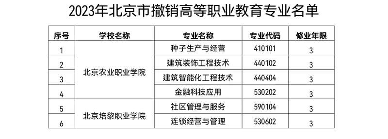 中国青年报客户端北京4月3日电(中青报·中青网记者 樊未晨)今天,北京市教委在其官方公号发布了《关于公布2023年新增高等职业教育专业名单的通知》,明确今年北京16所院校新增24个高职专业,同时撤销了2所院校的6个高职专业。