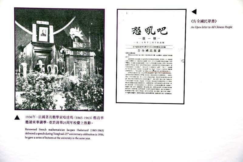 “华北之大,已安放不得一张平静的书桌了!”展览中,学生救国会在“一二·九”运动《告全国民众书》中的痛诉,呐喊出了清华人的爱国情怀。从清华学堂、清华学校、国立清华大学、国立西南联合大学到今天的清华大学,清华人始终把家国利益放在首位,永葆爱国的底色。