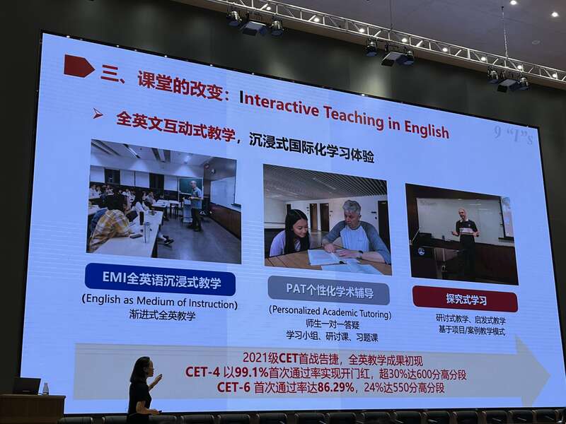 现场,华南理工大学党委副书记陶韶菁从办学历史、办学理念、办学规模、办学成果、建设理念、愿景使命等多个视角全面进行招生政策宣讲。她表示,华南理工大学广州国际校区立足本国实际,融合世界先进教育理念,引入全球优质教育资源,提供沉浸式的国际化成长环境,使全体学生在本土接受国际化教育,并且为学生提供创新创业的土壤和经验。“我们鼓励同学们把想法变成做法。”