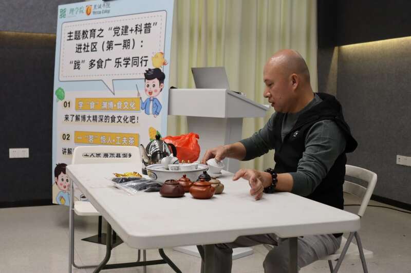 汕头大学理学院张薄博教授结合潮汕美食文化切入科普内容,为社区居民科普饮食文化、食品安全、营养健康等方面的知识,引起社区居民兴趣。他讲到:“我国饮食文化博大精深,源远流长。从鱼生到肥酒,汕头遗留了秦朝至宋朝的美食文化。”同时,张薄博从潮汕人爱吃的“潮汕杂咸”引出食品添加剂的相关知识,提倡居民日常生活中合理使用食品添加剂,科学认识食品添加剂,养成“三减三健”的健康生活方式,真正做个有文化的“吃货”。