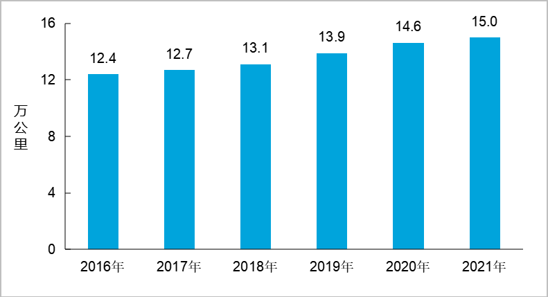 年末全国四级及以上等级公路里程506.19万公里,比上年末增加11.74万公里,占公路总里程比重为95.9%、提高0.7个百分点。其中,二级及以上等级公路里程72.36万公里、增加2.13万公里,占公路总里程比重为13.7%、提高0.2个百分点;高速公路里程16.91万公里、增加0.81万公里,国家高速公路里程11.70万公里、增加0.40万公里。