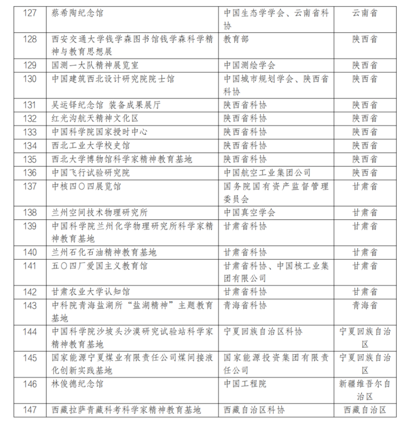 2022年5月30日,中国科协等7部门发布了首批140家科学家精神教育基地名单。目前,两批287家科学家精神教育基地已覆盖31个省区市和澳门特别行政区,初步形成了“以点带面,辐射全域”的体系格局。各地依托科学家精神教育基地开展了丰富多彩的科学家精神宣教活动,逐步将科学家精神教育基地打造成为党员干部党性教育的实训地、科技工作者国情研修的教学点、青少年爱国主义和科学教育的第二课堂、社会公众红色旅游的新打卡地,尊重知识、崇尚创新、尊重人才、热爱科学、献身科学的浓厚氛围正在形成。