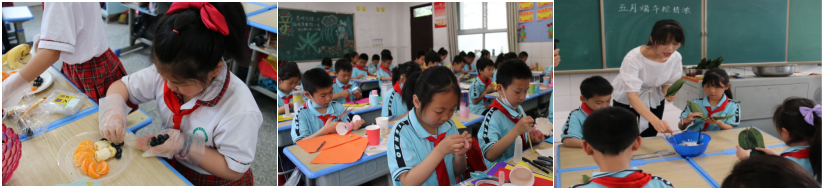 为迎接端午节,浙江路小学朱老师组织学生开展了包粽子劳育实践活动。老师和学生们一起包粽子,其乐融融。同学们以小组为单位,拿起粽叶,兴奋又认真地学习如何包粽子。折粽叶、填糯米、裹叶子、扎线......一道道工序有条不紊,一个个饱满漂亮的三角粽、四角粽在小手上成形。孩子们忙得不亦乐乎,纷纷表示“自己的劳动成果,格外香甜!”