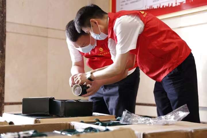 工作人员为返乡大学生准备礼物。(诸暨市委宣传部供图)