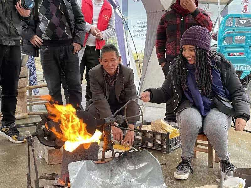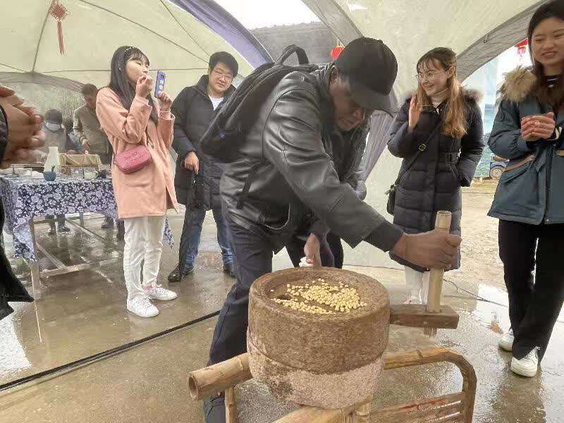 宁波诺丁汉大学28位来自英国、美国、俄罗斯、韩国、埃及、埃塞俄比亚等国家的留校师生,则走进宁波市奉化区大堰镇张家村,体验卤水点豆腐、包饺子、画糖画、放米炮、剪窗花、编竹篮等民俗活动。