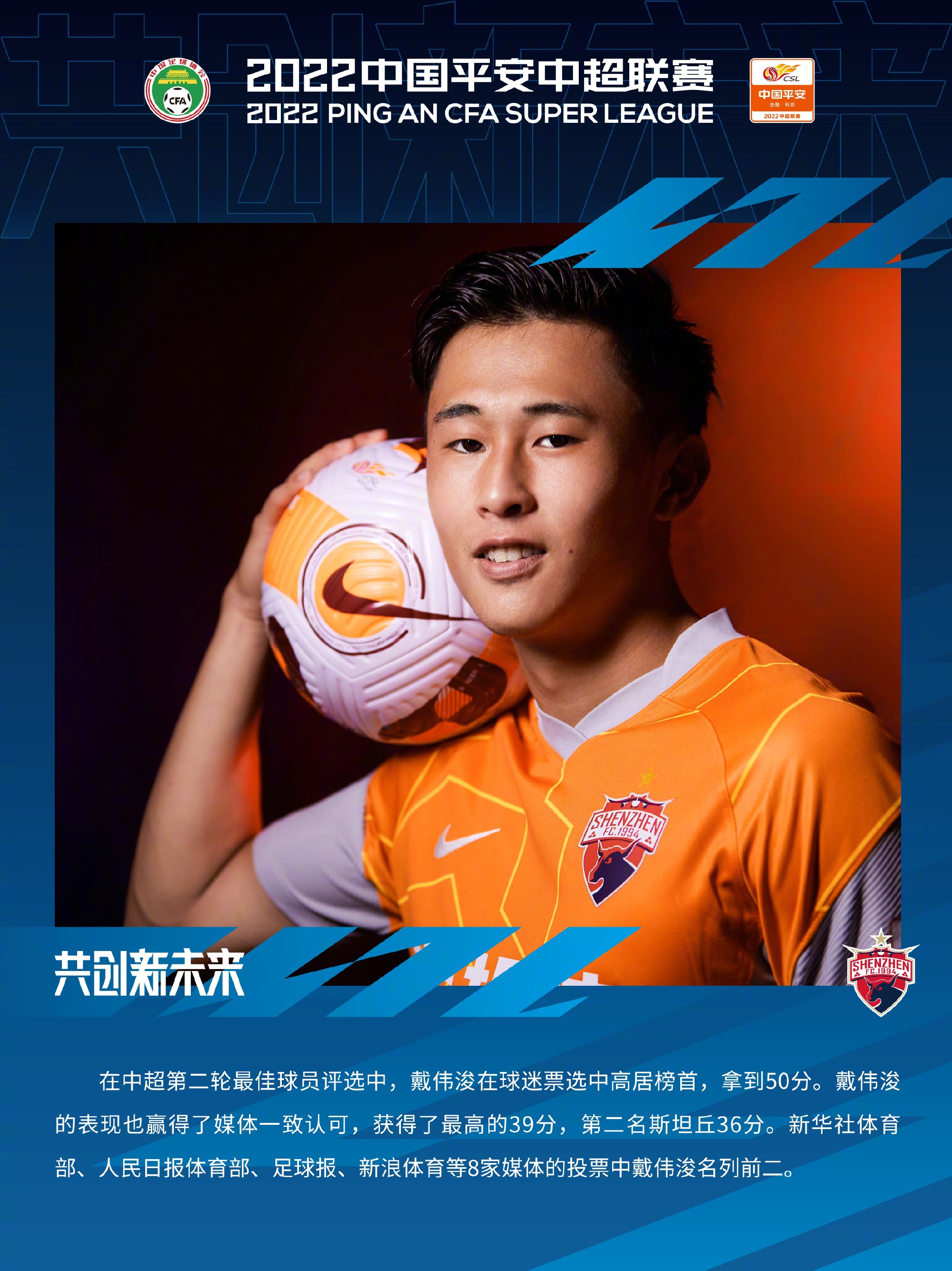 梅州6月12日电(记者 卞立群)2轮贡献1球2助攻,在中超联赛的第3个年头开始时,22岁的戴伟浚状态火热。   2020年加盟深圳市足球俱乐部、今年一月首次入选国足、在与日本队的世预赛12强