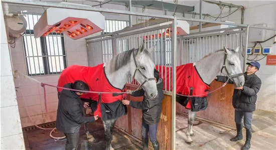 留校学生在为马穿红色新衣。罗阳供图   一群00后,脚下踩着闪着七彩灯光的平衡车,解放出来的双手拿着平头铁铲,应和着耳机里摇滚乐的音乐节奏,从建筑工地常见的双轮手推车里用力铲起精饲料,精准地投进不