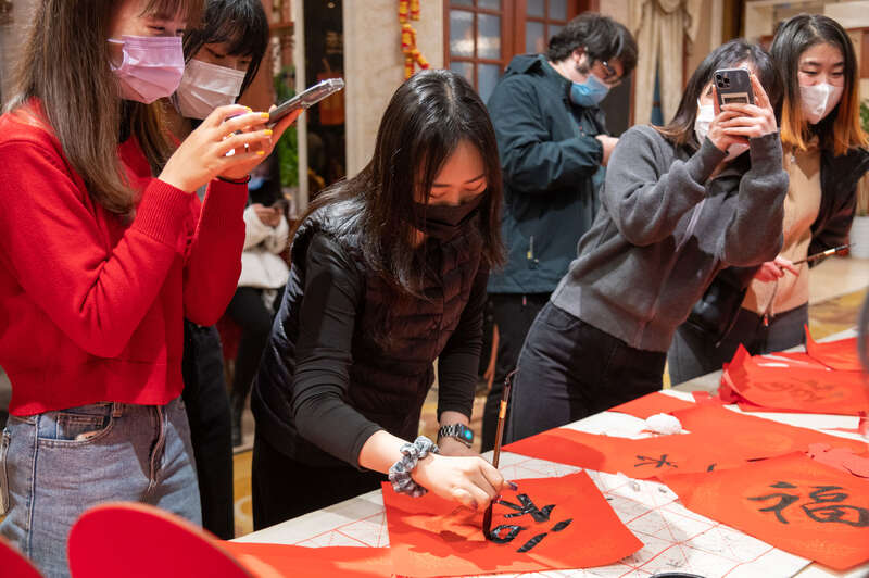 中国青年报客户端讯(中青报·中青网记者 李剑平)连日来,浙江省宁波市城乡张灯结彩,年味浓厚,浙江万里学院、宁波诺丁汉大学在严格遵守疫情防控要求下,组织留校中外师生一同感受传统年味。   来自的