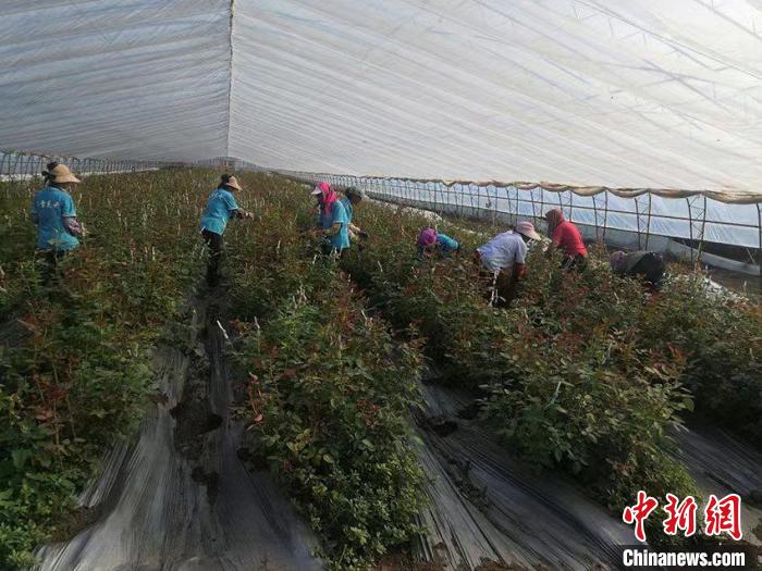 长春6月28日电 (李丹)咔咔、咔咔……伴随着花剪的清脆声响,张国香忙着将刚采摘的玫瑰花修枝剪刺,按照品质、规格分类放好。“我在这工作四年了,一年下来能有4万多块钱的收入。”张国香的脸上洋溢着笑