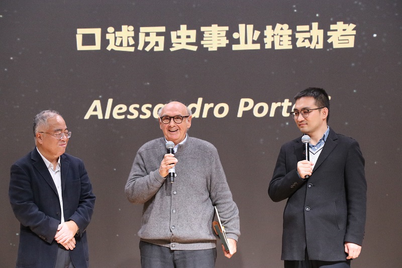 11月10日晚,由中国传媒大学发起并主办的第九届中国口述历史国际周特别发布仪式——“口述历史之夜”三年后重返线下,在初冬时节晚上零下两三度的北京,可容纳400人的中传讲堂座无虚席,年度优秀口述历史项目短片展映、年度十大口述历史项目分享暨证书颁发、特别项目分享、“口述历史国际研习营”结业仪式相继进行。国际口述历史泰斗亚历山德罗·波尔泰利,英国口述历史协会理事维如思卡·卡拉布里亚,新加坡口述历史学者赖素春,中国社会科学院研究员定宜庄、姚力,澳门大学讲座教授王笛,中国人民大学教授杨祥银,北京大学教授张藜、助理教授黄江军,人民政协报社副社长许水涛,军事科学院研究员陈传刚、副研究员李振林,北京科技大学教授熊卫民,南京大学副教授武黎嵩,著名主持人敬一丹,历史作家余戈等专家学者等与会,在中国传媒大学校长张树庭和校学术委员会副主任丁俊杰的致辞中,开启这场堪称口述历史学界年度聚首的国际盛会。