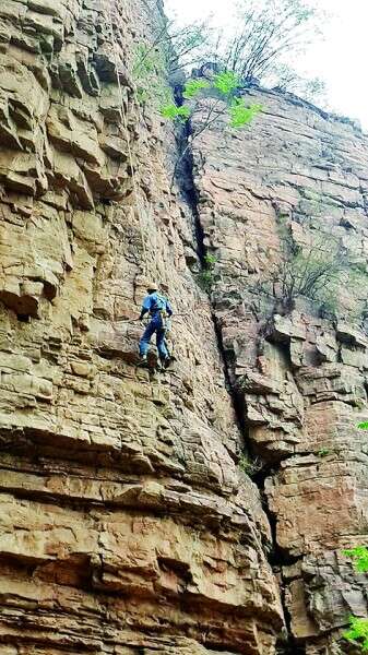 当年,林县人民就是这样用绳子悬挂在峭壁上,硬是在太行山的绝壁山巅凿出了福泽百姓的“红旗渠”。本报记者 李韵摄/光明图片