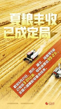 据农业农村部数据显示,截至6月21日,四川、湖北、河南、安徽、江苏、陕西、山东、河北、山西等9省已收获小麦3.01亿亩,收获进度达99.2%,全国大规模机收基本结束。   为了打好今年这场重要的